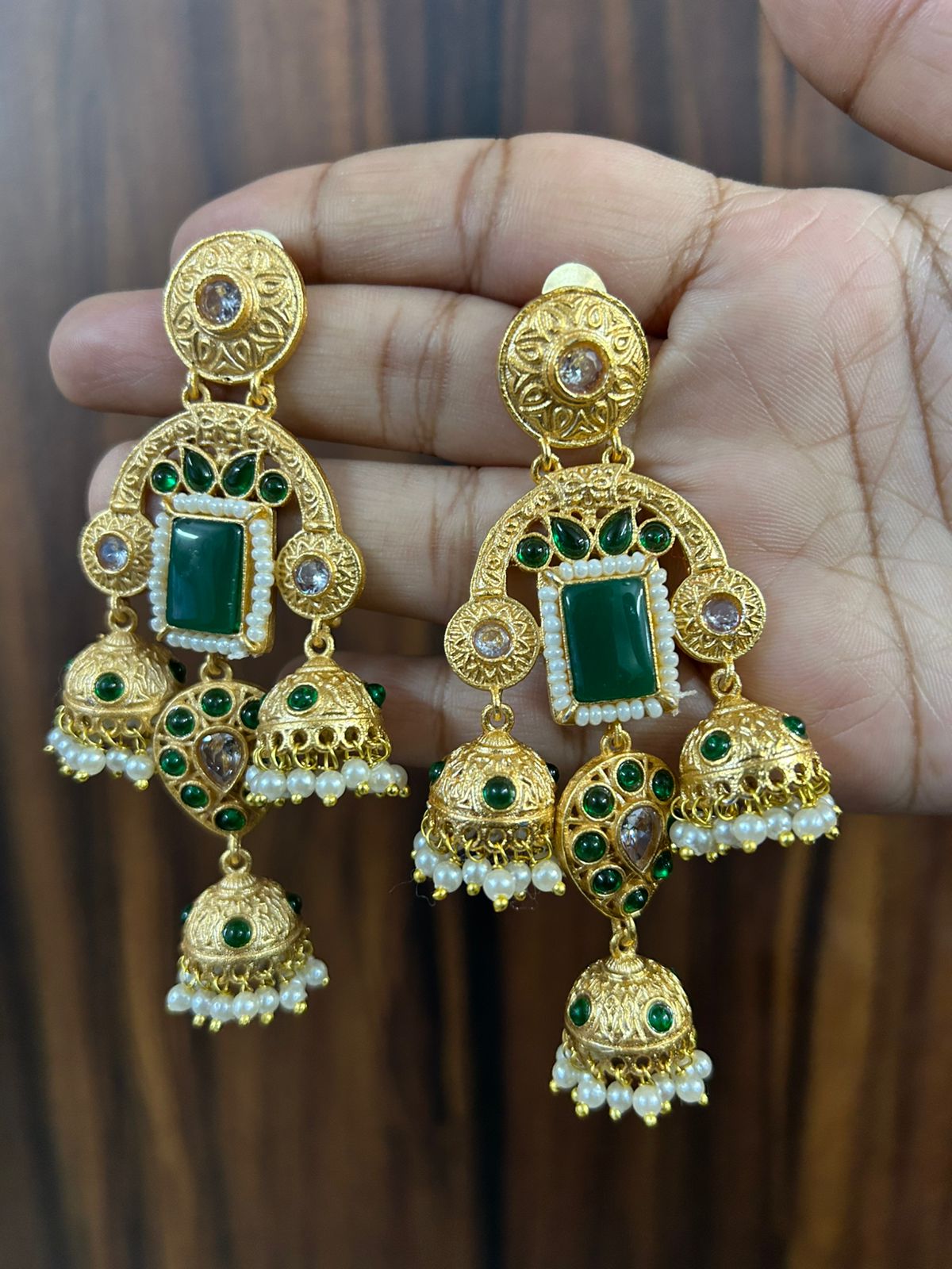 Amisha Jhumka (Green / Golden / brass/ Short )