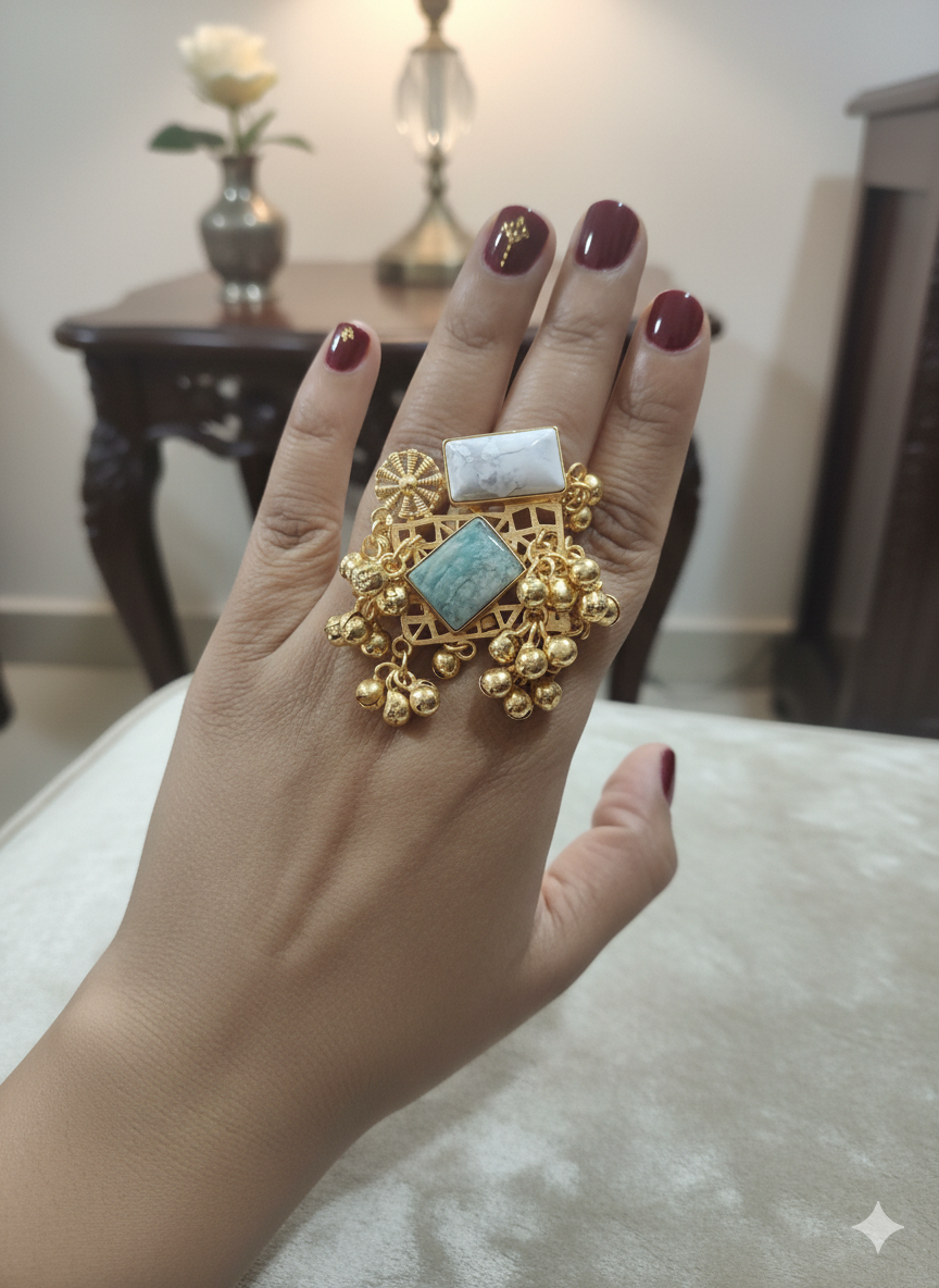 Firoja antique brass Ring ( Antique ring , Brass, Firoja,blue )