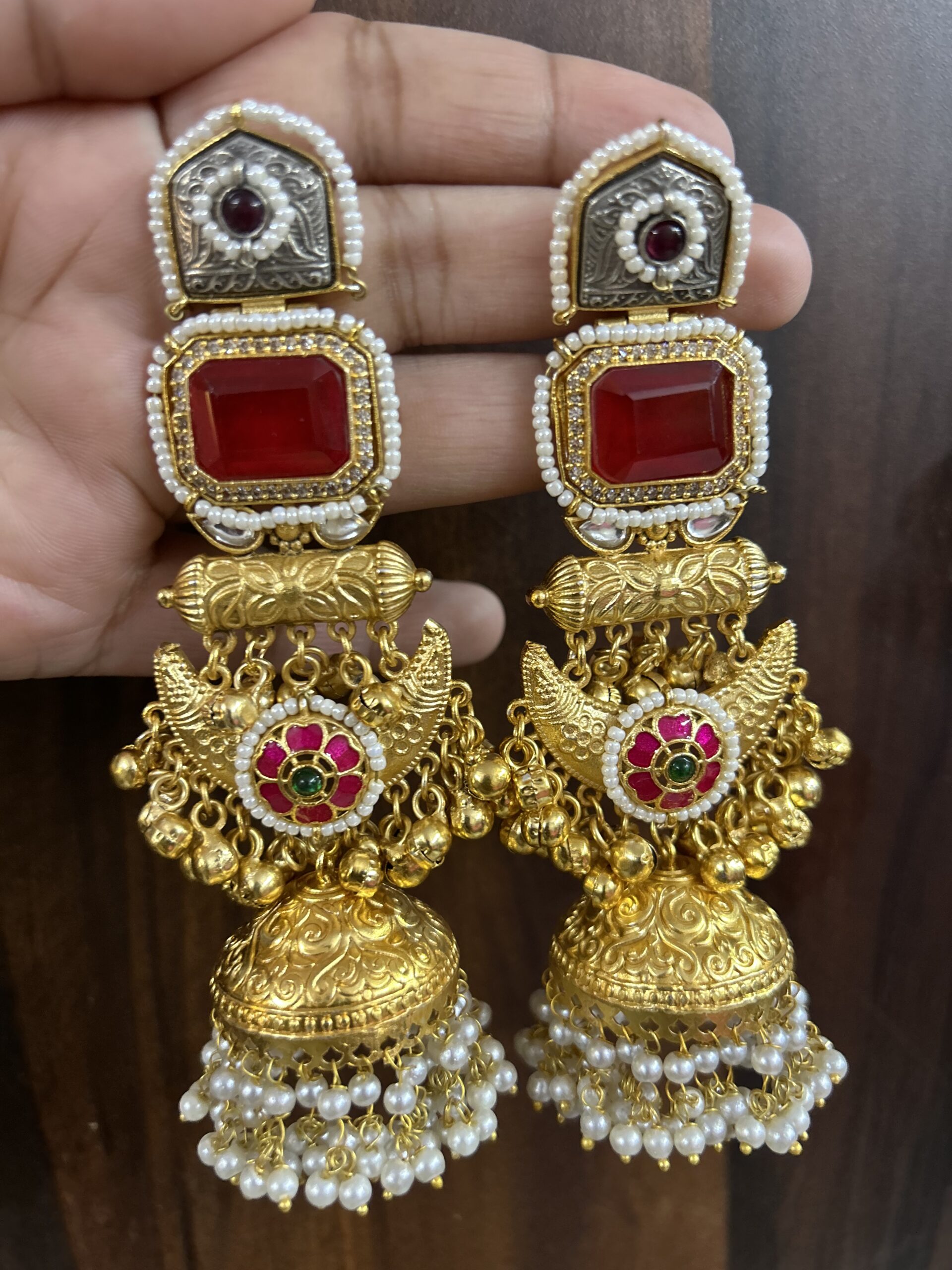Jaspreet Jhumka ( Red / pink / peach / Green )