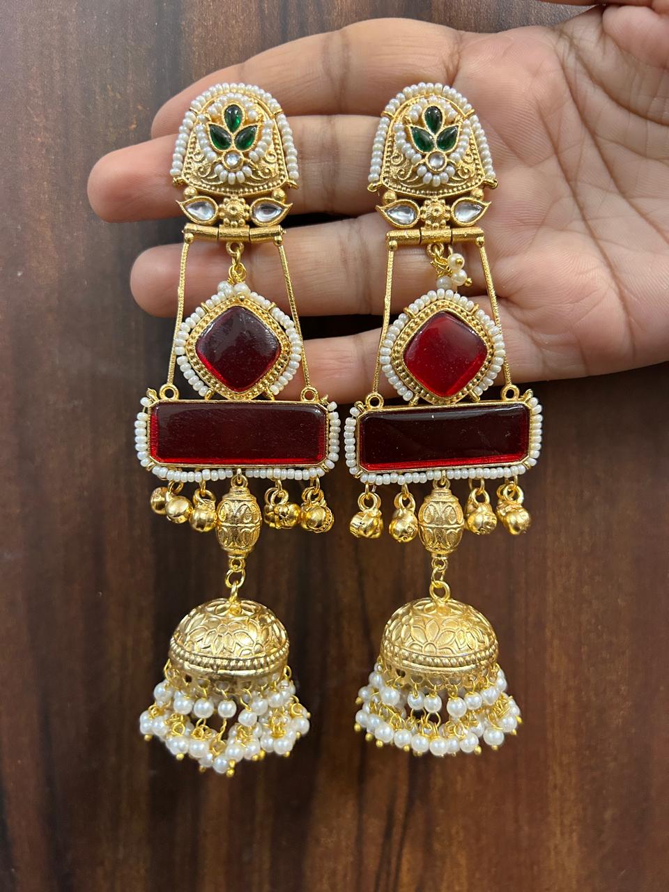 Kashish jhumka (Red/Golden)