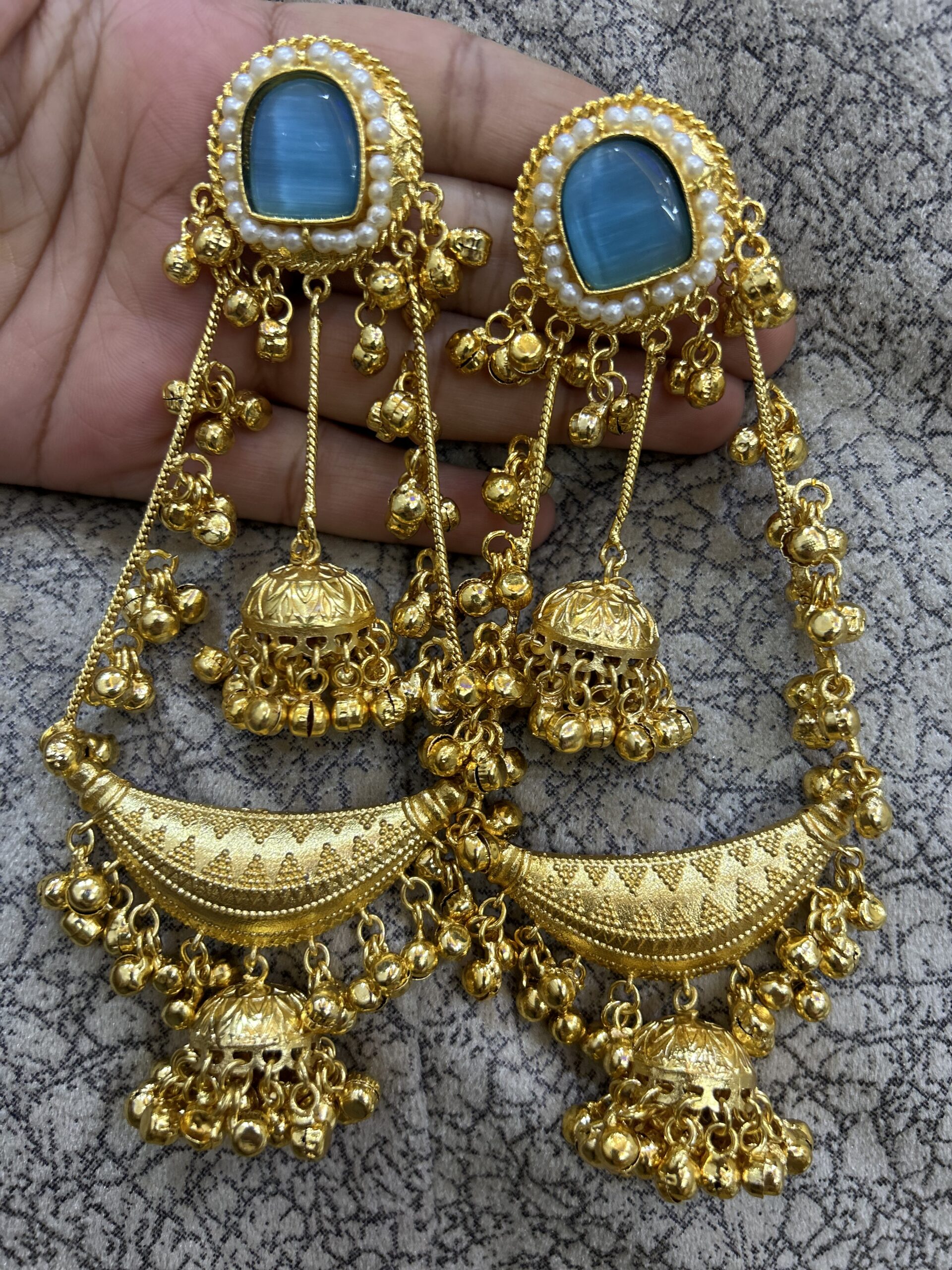 Maahi jhumka (firoja/Blue / golden )