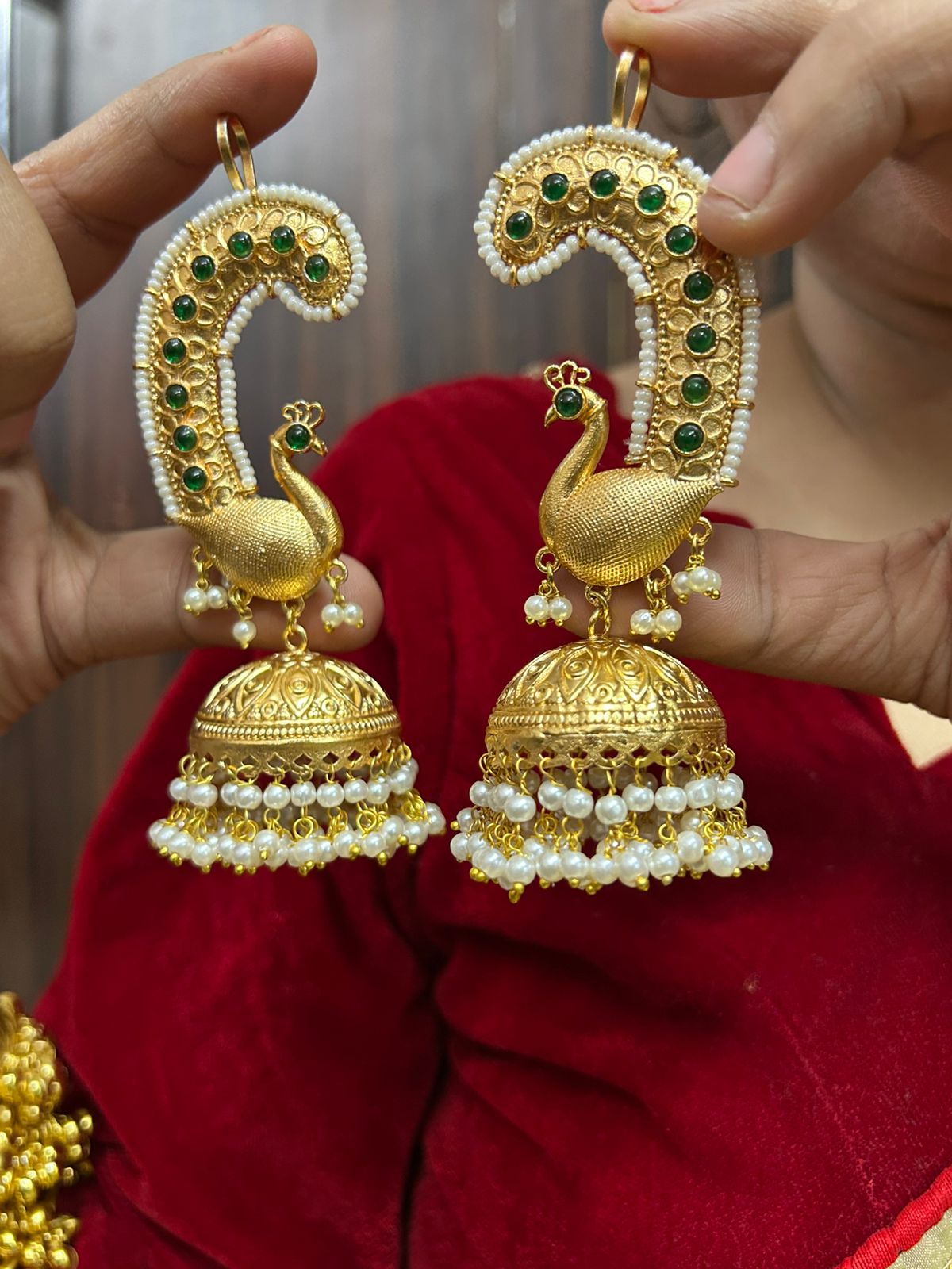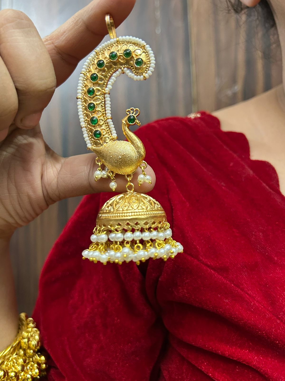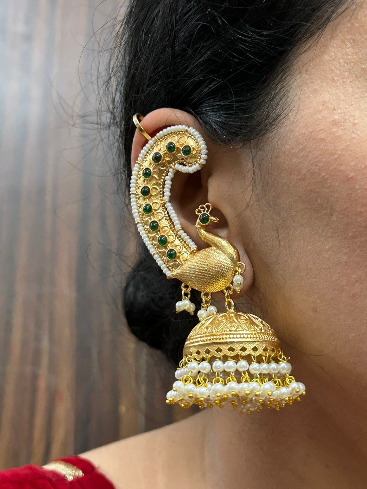 / Mayur Earcuff Jhumka (Green)