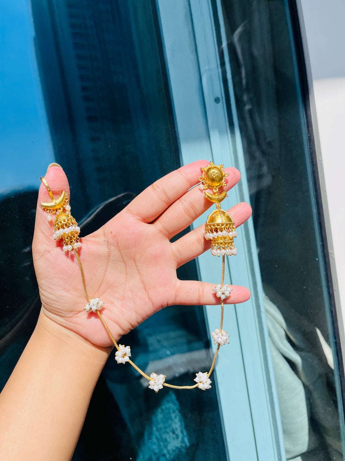 Nupur earrings ( Kaanchain / golden/ pearl / White )