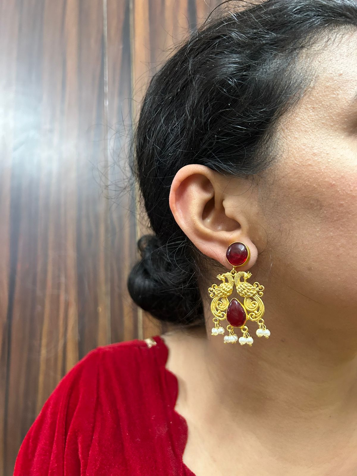 Rashika earrings( Red / Short / Brass ))