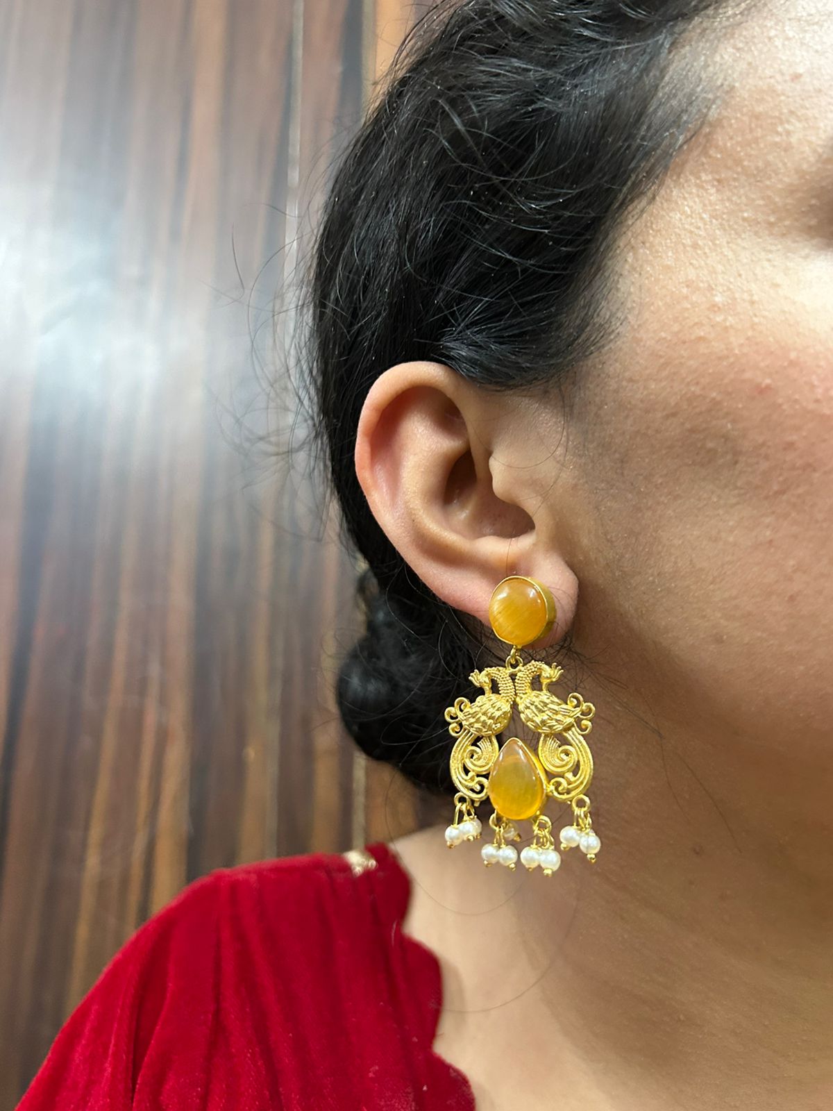 Rashika earrings( yellow / Golden / Short / Brass )