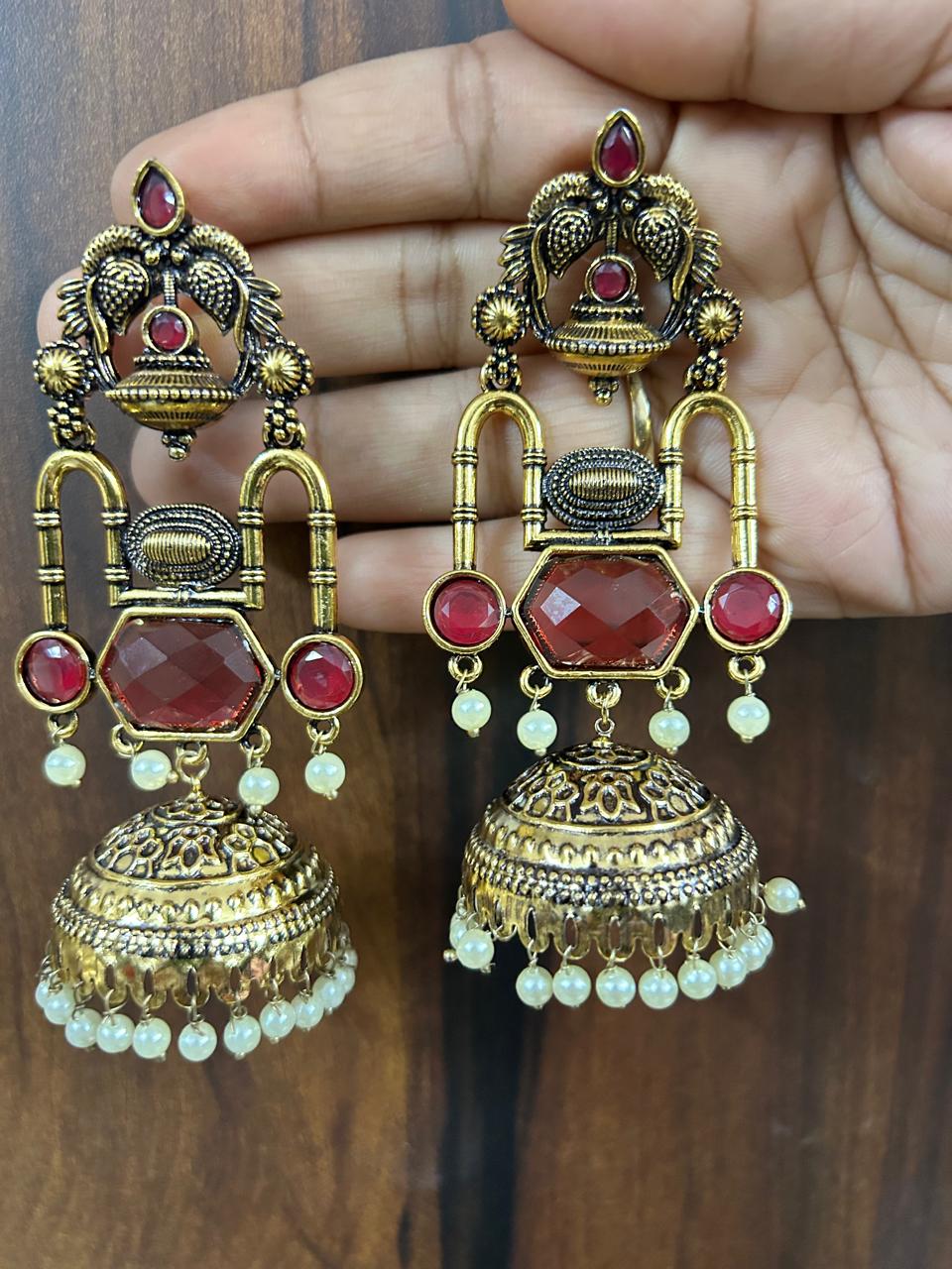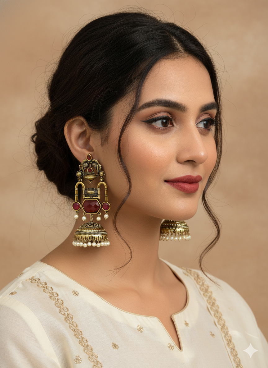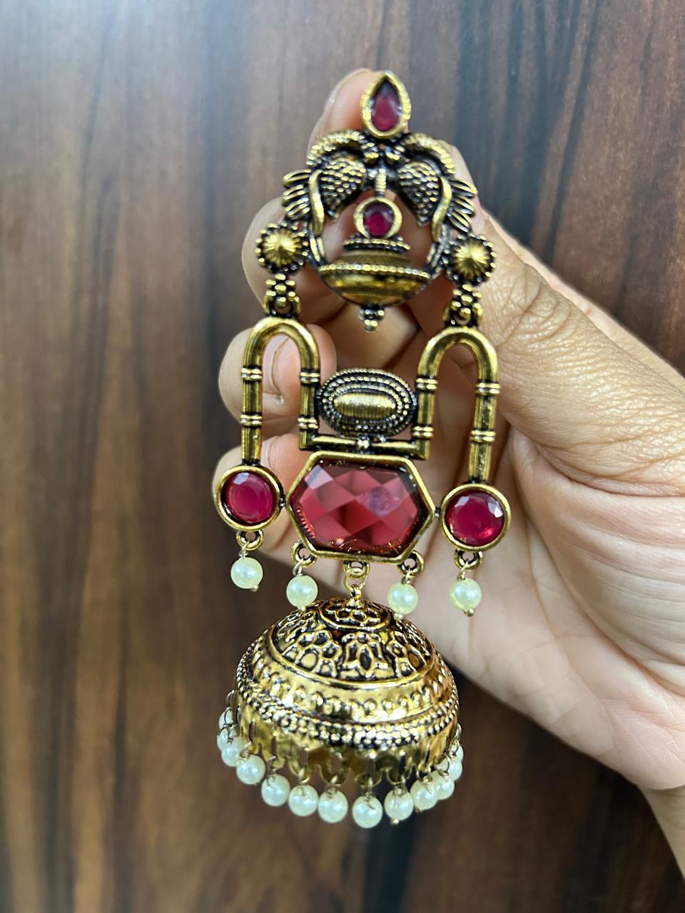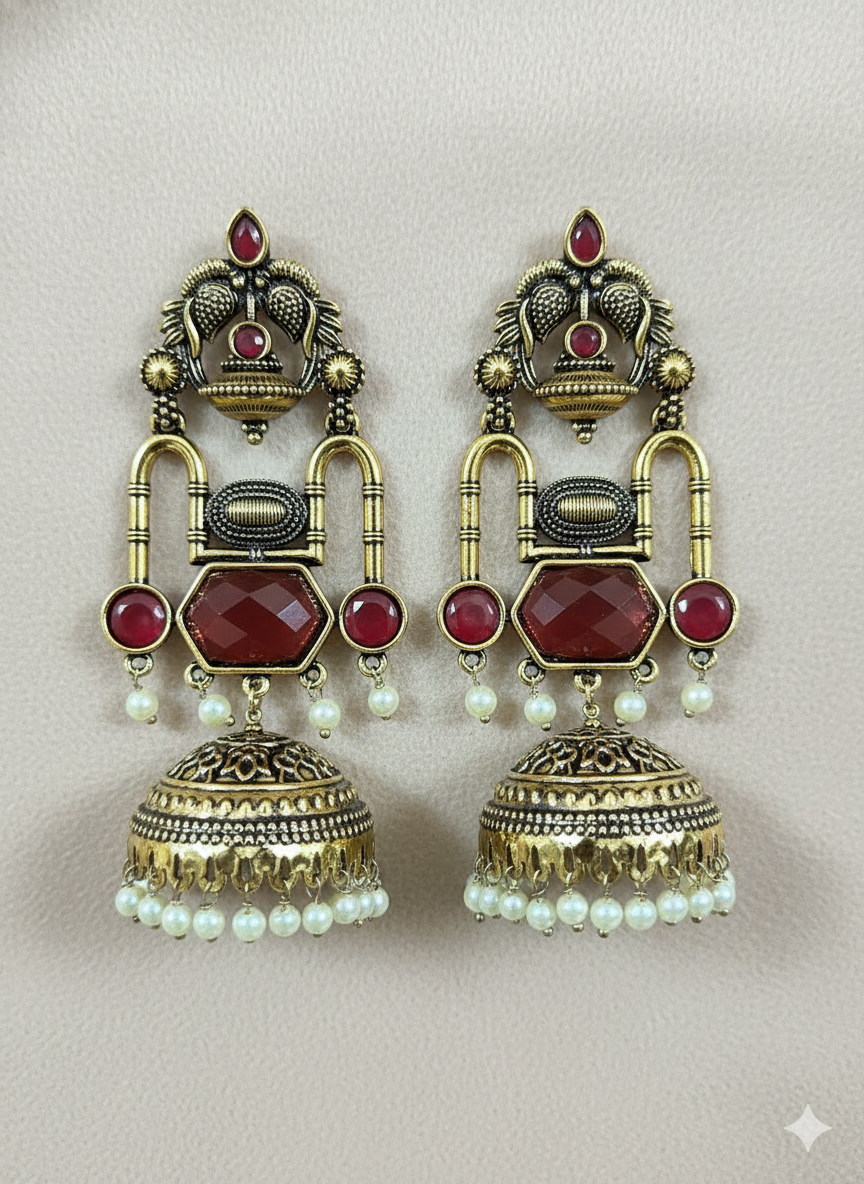 Vichitra Jhumka (Red color & Antique Gold )